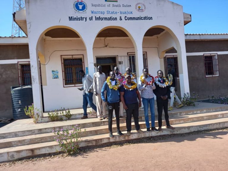 UJOSS Secretary General Majak Daniel Kuany with the team just landed in Kuajok airstrip in Warrap State ahead of tomorrow’s capacity building training for journalists in Kuajock. Warrap State will now be the last state to have UJOSS workshop on…